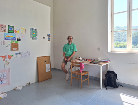 ↖ portrait de l’artiste dans son atelier à Moly-Sabata, juillet 2024