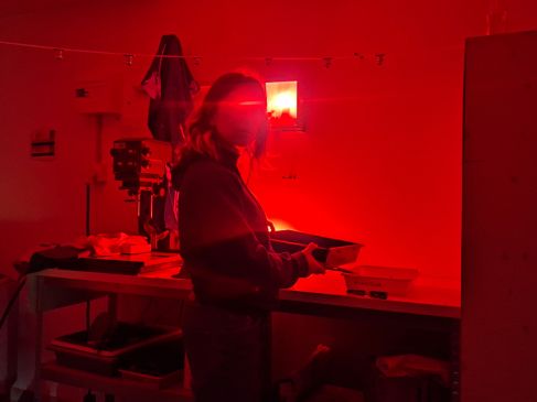 ↖ portrait de l’artiste dans son labo photo à Moly-Sabata, mars 2026