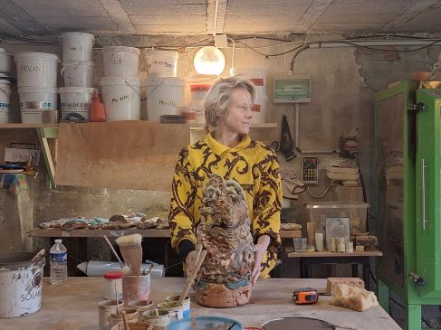↖ portrait de l’artiste dans la poterie à Moly-Sabata, mars 2024