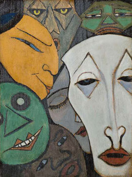 ↖ Juliette Roche, Masques, vers 1912, Huile sur bois, 22,9 x 30,5 cm – Paris, Fondation Albert Gleizes
